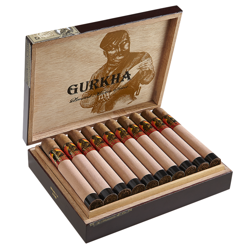 Hand-rolled with a dark, silky Dominican-grown Habano 2000 wrapper aged at least five years, the Gurkha Master Select XO cigar boasts excellent construction and a consistent burn. Its filler includes aged Dominican and Honduran long-fillers, along with Cuban-seed ligeros sourced from the Cibao Valley and Honduras, ensuring a smooth draw and robust flavor.